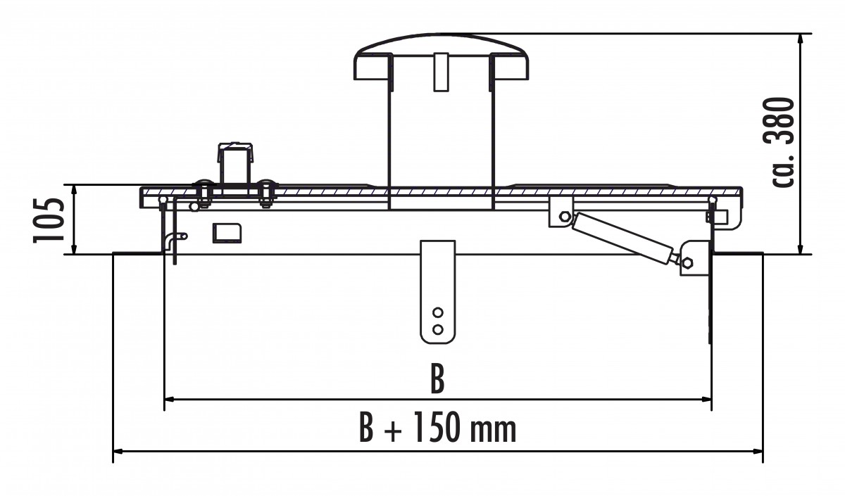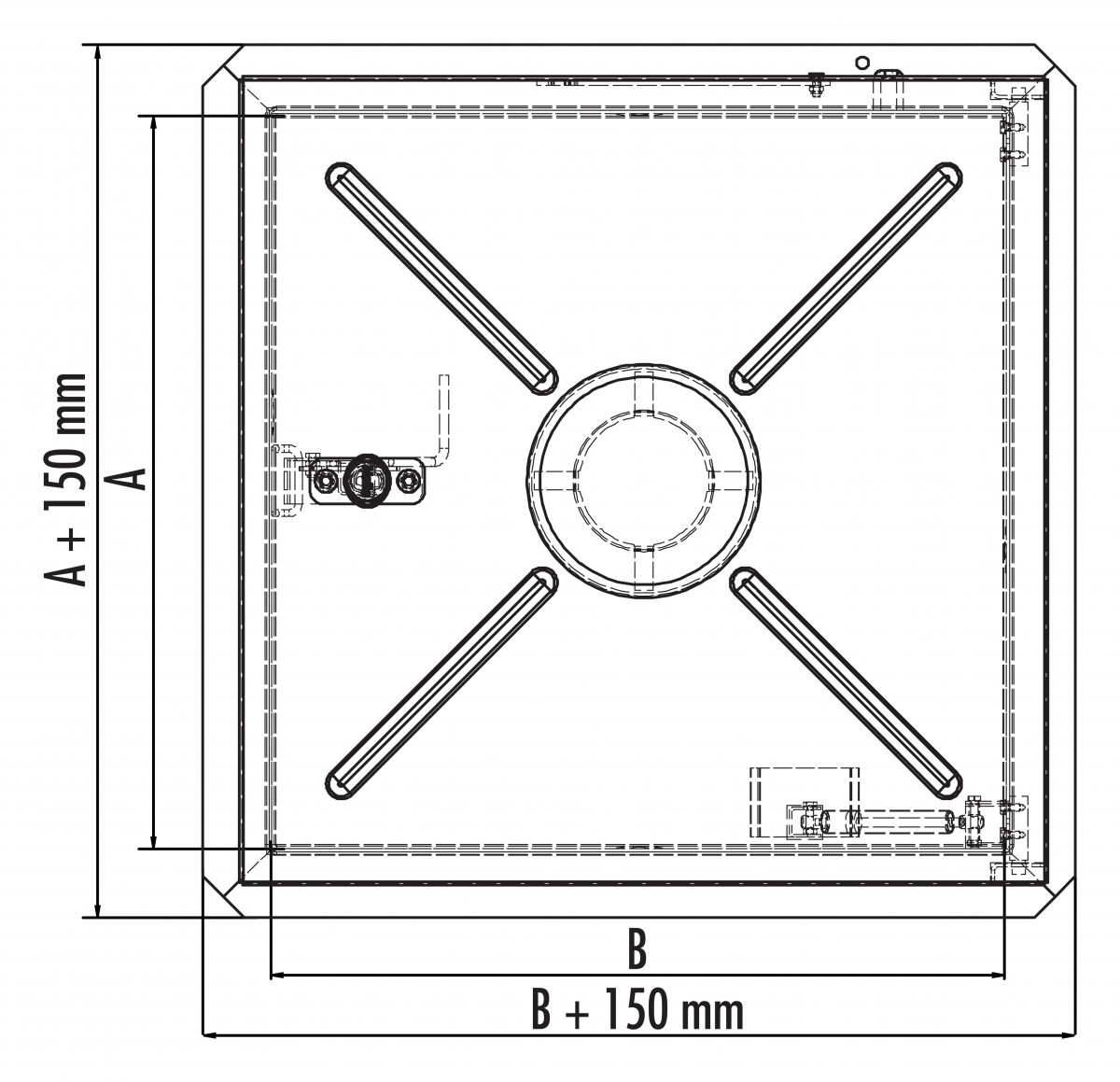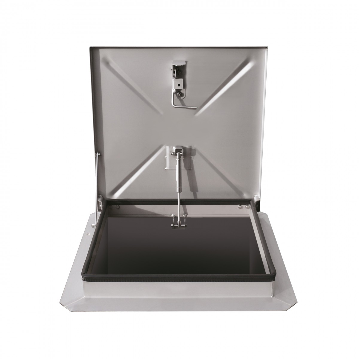 Podignuta središnja ploča s ojačavajućim rubom i skrivenim šarkama, plinska opruga, perimetralno brtvljenje, mehanizmi za samoporavnavanje i zaključavanje. Okvir ima kutni lim s unutarnjim sidrenim pločama. Ostale veličine na zahtjev.